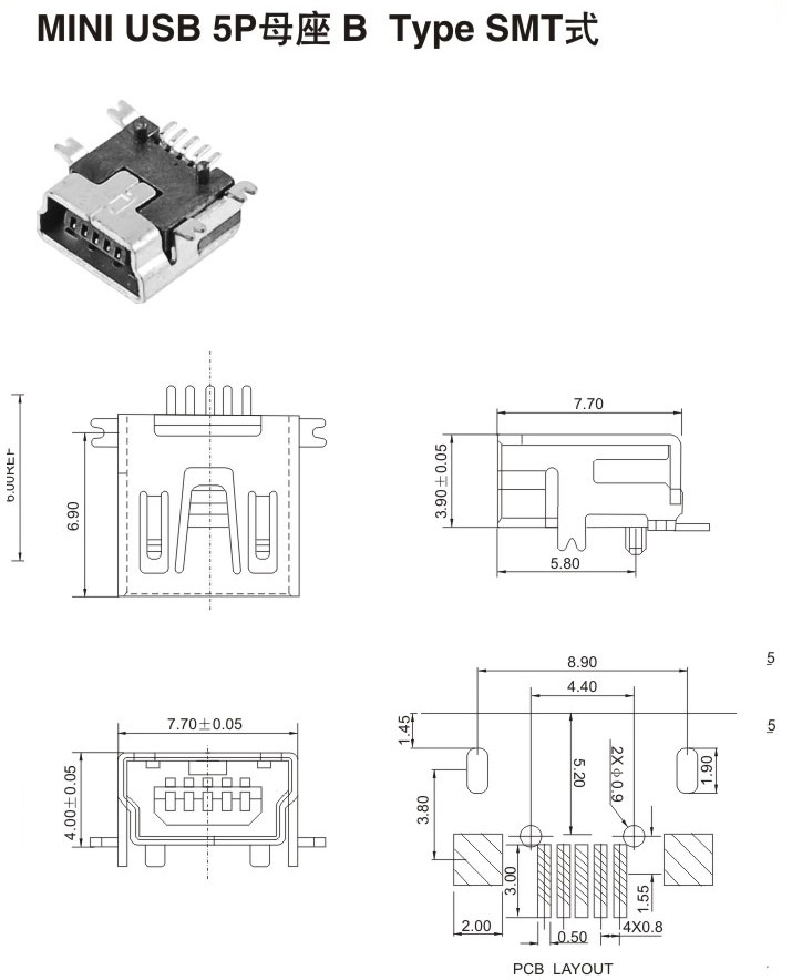 MIMI USB 5P母座 B Type SMT式