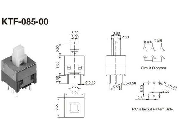 無鎖開關/自鎖開關KTF-085-00.產品廣泛用于收音機、玩具、電話、電視機、MP3、等電腦通訊器材、及家用電器等設備。