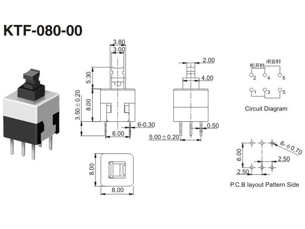 小撥動開關KTF-080-00.產品廣泛用于收音機、玩具、電話、電視機、MP3、等電腦通訊器材、及家用電器等設備。